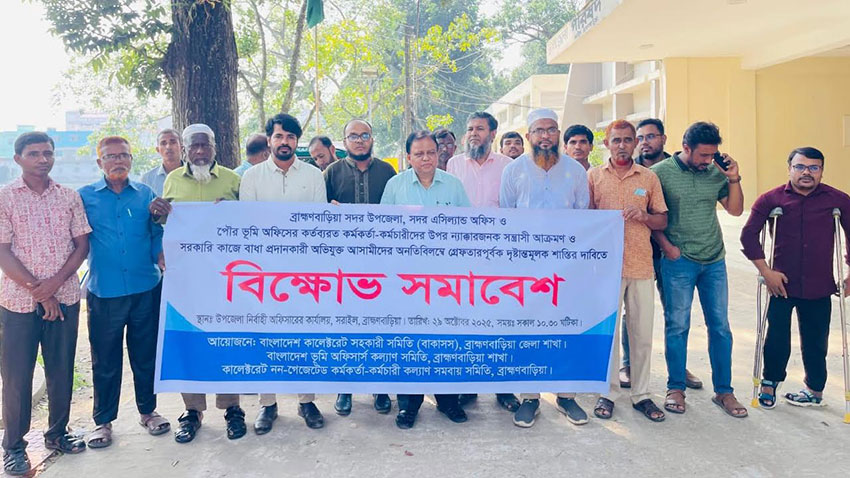 ব্রাহ্মণবাড়িয়ায় সরকারি কর্মকর্তা-কর্মচারীদের উপর ন্যাক্কারজনক সন্ত্রাসী আক্রমণ ও সরকারি কাজে বাধা প্রদানকারী অভিযুক্ত আসামীদের অনতিবিলম্বে
