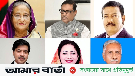 বাম থেকে- শেখ হাসিনা, ওবায়দুল কাদের, কবির বিন আনোয়ার, হাবিবে মিল্লাত, জান্নাত আরা হেনরী ও রিয়াজ উদ্দীন