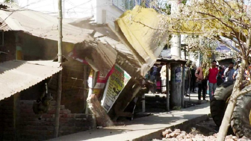নাটোর শহরে অবৈধ স্থাপনা উচ্ছেদ অভিযান