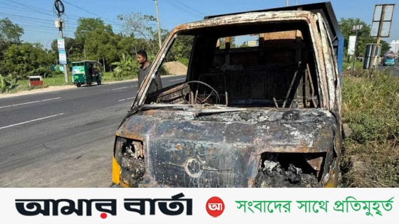 কুমিল্লার চৌদ্দগ্রামে পৌর জামায়াত নেতা ফজলু মোল্লার পিকআপে অগ্নিসংযোগ করেছে দুর্বৃত্তরা।