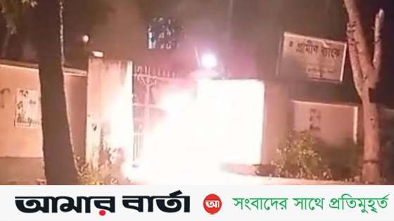 নওগাঁর রাণীনগরে গ্রামীণ ব্যাংকের সামনে আগুন