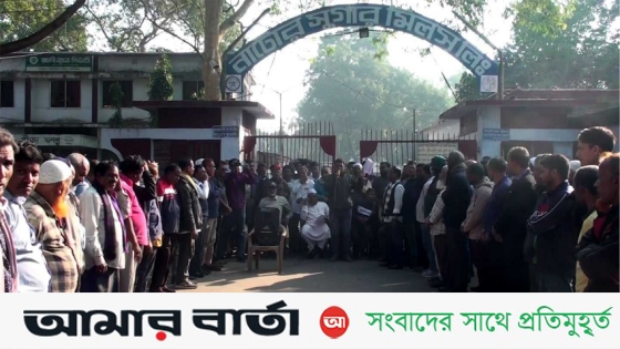 চার দাবিতে নাটোর চিনিকলের শ্রমিক-কর্মচারীদের বিক্ষোভ