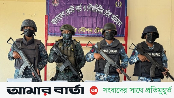 টেকনাফে কোস্ট গার্ড ও নৌবাহিনীর যৌথ অভিযানে বিপুল পরিমাণ গোলা-বারুদসহ দেশীয় আগ্নেয়াস্ত্র জব্দ।