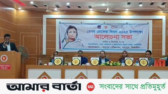“নারী ও কন্যার প্রতি সহিংসতা বন্ধে ঐক্যবদ্ধ হই, ডিজিটাল নিরাপত্তা নিশ্চিত করি”—এই প্রতিপাদ্যকে সামনে রেখে টাঙ্গাইলের মধুপুরে বর্ণাঢ্য আয়োজনের মধ্য দিয়ে পালিত হয়েছে আন্তর্জাতিক নারী নির্যাতন প্রতিরোধ পক্ষ ও বেগম রোকেয়া দিবস-২০২৫।