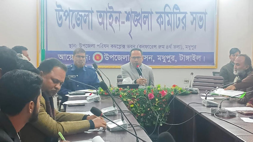 টাঙ্গাইলের মধুপুরে উপজেলা প্রশাসনের উদ্যোগে মাসিক আইনশৃঙ্খলা কমিটির সভা অনুষ্ঠিত হয়েছে।  সোমবার (২৯ ডিসেম্বর) বেলা ১১টায়