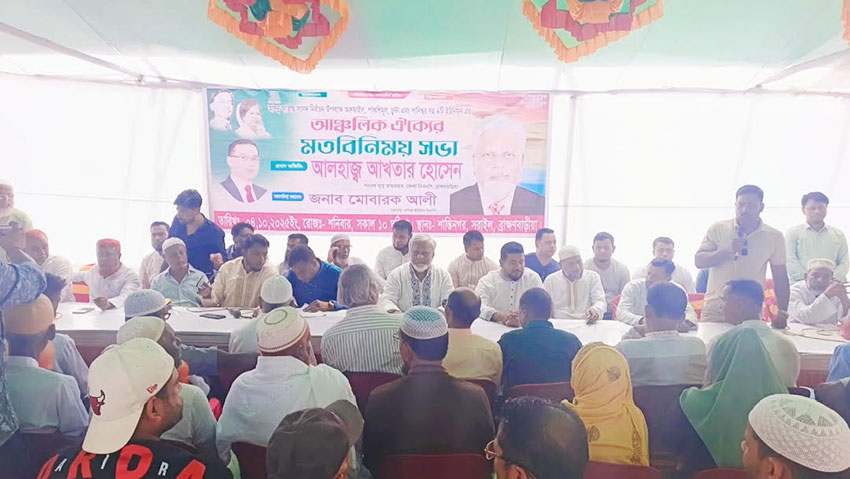 ব্রাহ্মণবাড়িয়ার সরাইল উপজেলার অরুয়াইল, পাকশিমুল, চুন্টা এবং পানিশ্বরসহ ৪ টি ইউনিয়নের আঞ্চলিক ঐক্যের মতবিনিময় সভা অনুষ্ঠিত হয়েছে। শনিবার (৪ অক্টোবর) দুপুরে