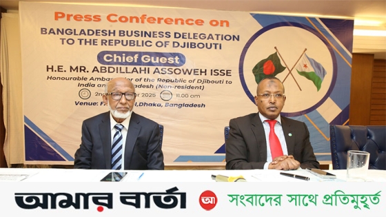 মঙ্গলবার (২ ডিসেম্বর) রাজধানীর একটি হোটেলে আয়োজিত এক সংবাদ সম্মেলনে তিনি এই আহ্বান জানান। রাষ্ট্রদূত আগামী জানুয়ারি মাসে বাংলাদেশের একটি ব্যবসায়ী প্রতিনিধিদলের জিবুতি সফর বিষয়েও বক্তব্য রাখেন। এ সময় উপস্থিত ছিলেন বাংলাদেশে জিবুতির অনারারি কনসাল ও বারভিডার সভাপতি আবদুল হকসহ আরও অনেকে। বাংলাদেশের তৈরি পোশাক খাত, টেক্সটাইল, ইলেকট্রনিক্স, ওষধ এবং খাদ্য প্রক্রিয়াকরণ শিল্প খাতের ব্যবসায়ী নেতৃবৃন্দ উপস্থিত ছিলেন।