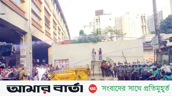 আন্দোলনরত নন-এমপিও শিক্ষকদের ওপর পানি নিক্ষেপ করে পুলিশ।