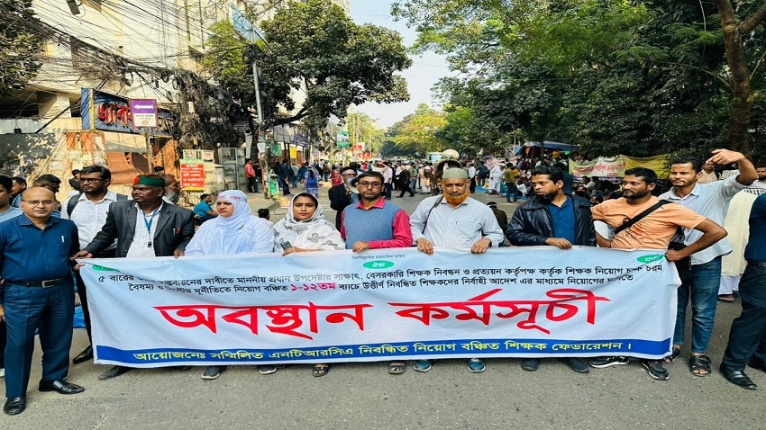সড়ক অবরোধ করেছেন আন্দোলনরত ১-১২ তম নিবন্ধিত শিক্ষকগণ