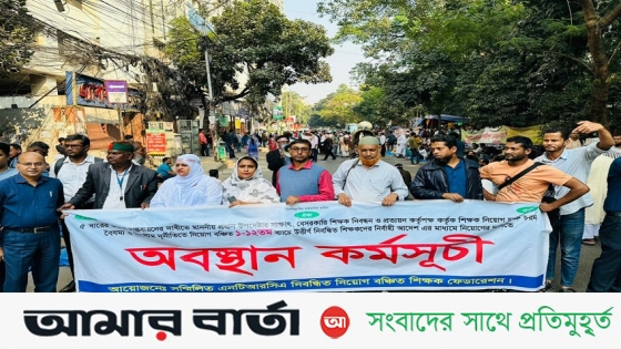 সড়ক অবরোধ করেছেন আন্দোলনরত ১-১২ তম নিবন্ধিত শিক্ষকগণ