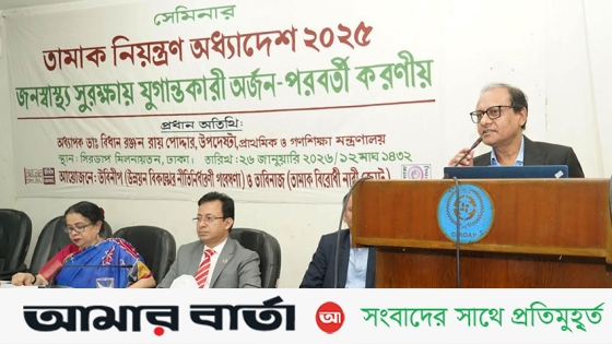 সোমবার (২৬ জানুয়ারি) উবিনীগের আয়োজনে সিরডাপের ইন্টারন্যাশনাল হলে ‘তামাক নিয়ন্ত্রণ অধ্যাদেশ ২০২৫ : স্বাস্থ্য সুরক্ষায় যুগান্তকারী অর্জন—পরবর্তী করণীয়’ শীর্ষক সেমিনারে প্রধান অতিথির বক্তব্যে তিনি এসব কথা বলেন।