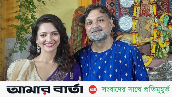 শেয়ার করা ছবিতে দেখা যায় পূজা মন্ডপে বেশ মিষ্টি হাসিতে ধরা দিয়েছেন এ জুটি। ম্যাচিং করা পাঞ্জাবি আর শাড়িতে বেশ মানিয়েছে তাদের।