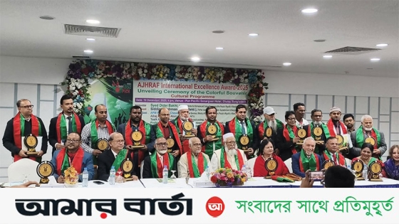 এশিয়ান জার্নালিস্টস এন্ড হিউম্যান রাইটস এক্টিভিটস ফোরাম (AJHRAF) বাংলাদেশ চ্যাপ্টার এর উদ্যোগে বর্ণাঢ্য আয়োজনে ১৬ ডিসেম্বর মহান বিজয় দিবস উপলক্ষে আলোচনা সভা, AJHRAF International Excellence Award-2025 প্রদান, বর্ণিল স্যুভেনির এর মোড়ক উম্মোচন ও সাংস্কৃতিক অনুষ্ঠান ১৬ ডিসেম্বর ২০২৫ মঙ্গলবার, বিকাল ৫ টায় Pan Pacific Sonargoan Hotel (Padma Hall), ঢাকায় অনুষ্ঠান অনুষ্ঠিত হয়।