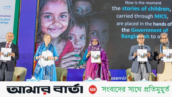 রোববার (১৬ নভেম্বর) রাজধানীর একটি অডিটোরিয়ামে জরিপের ফল প্রকাশ করেন বিবিএসের মহাপরিচালক মোহাম্মদ মিজানুর রহমান ও ইউনিসেফের প্রতিনিধি রানা ফ্লাওয়ার্স। ৬৩ হাজার পরিবারের ওপর করা এই জরিপে পুষ্টি, স্বাস্থ্য, শিক্ষা, স্যানিটেশন থেকে শুরু করে শিশুশ্রম ও সহিংসতা— সব ক্ষেত্রেই এক অসম বাস্তবতা উঠে এসেছে।