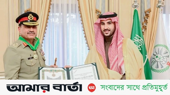 আর আইএসপিআরের বিবৃতিতে বলা হয়েছে, সর্বোচ্চ রাষ্ট্রীয় সম্মাননা প্রদানের মাধ্যমে ফিল্ড মার্শাল মুনিরের দীর্ঘ সামরিক সার্ভিস, নেতৃত্ব এবং প্রতিরক্ষা ক্ষেত্রে দুই দেশের সহযোগিতাপূর্ণ সম্পর্ক, কৌশলগত সমন্বয় এবং প্রাতিষ্ঠানিক সংযোগকে স্বীকৃতি দিয়েছে সৌদি।
