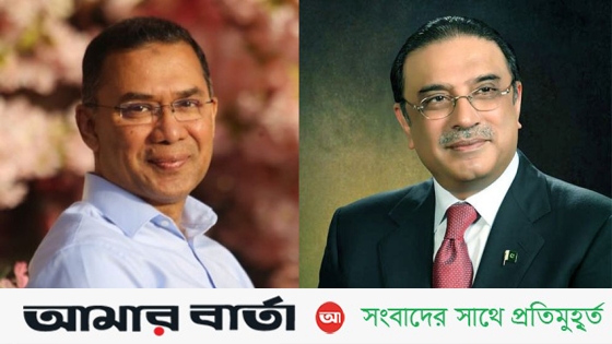ত্রয়োদশ জাতীয় সংসদ নির্বাচনে ভূমিধস বিজয়ের জন্য বিএনপির চেয়ারম্যান তারেক রহমানকে অভিনন্দন জানিয়েছেন পা‌কিস্তানের প্রেসিডেন্ট আসিফ আলি জারদারি। শুক্রবার (১৩ ফেব্রুয়া‌রি) সামাজিক মাধ্যম এক্সে (সাবেক টুইটার) এক পোস্টে তারেক রহমানকে অভিনন্দন জানান পা‌কিস্তানের প্রেসিডেন্ট।
