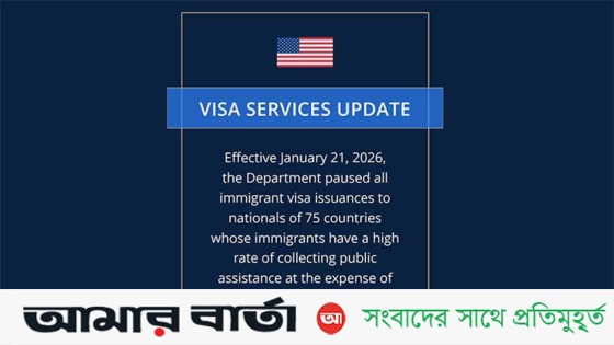 মার্কিন দূতাবাস জানায়, ২১ জানুয়ারি ২০২৬ থেকে কার্যকরভাবে যুক্তরাষ্ট্রের পররাষ্ট্র দপ্তর বাংলাদেশসহ কিছু দেশের নাগরিকদের জন্য অভিবাসী ভিসা (ইমিগ্রান্ট ভিসা) দেওয়া স্থগিত করেছে। যেসব দেশের অভিবাসীরা যুক্তরাষ্ট্রের করদাতাদের অর্থায়নে পরিচালিত সরকারি সহায়তা তুলনামূলক বেশি হারে গ্রহণ করেন, তাদের ক্ষেত্রেই এ সিদ্ধান্ত প্রযোজ্য বলে জানানো হয়েছে।