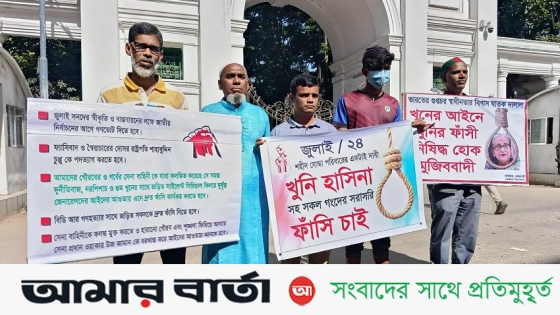 জুলাই গণঅভ্যুত্থানে সংঘটিত মানবতাবিরোধী অপরাধের মামলায় সাবেক প্রধানমন্ত্রী শেখ হাসিনাসহ তিন আসামির ফাঁসির দাবি নিয়ে