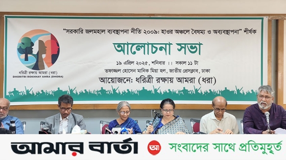 শনিবার (১৯ এপ্রিল) জাতীয় প্রেস ক্লাবে ধরিত্রী রক্ষায় আমরার (ধরা) আয়োজিত ‘সরকারি জলমহাল ব্যবস্থাপনা নীতি ২০০৯: হাওর অঞ্চলে বৈষম্য ও অব্যবস্থাপন ‘ শীর্ষক এক আলোচনা সভায় প্রধান অতিথির বক্তব্যে তিনি এ কথা বলেন।