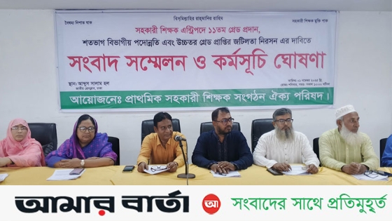 সংবাদ সম্মেলনে বাংলাদেশ প্রাথমিক সহকারী শিক্ষক সমাজের সভাপতি শাহিনুর আল আমীন বলেন, সারাদেশে প্রায় তিন লাখ ৮০ হাজার সহকারী শিক্ষক নিষ্ঠা ও আন্তরিকতার সঙ্গে প্রাথমিক শিক্ষার মানোন্নয়নে কাজ করলেও তারা দীর্ঘদিন ধরে আর্থিক ও মর্যাদাগত বৈষম্যের শিকার হয়ে আসছেন। বর্তমানে একজন সহকারী শিক্ষক ১৩তম গ্রেডে মাত্র ১১ হাজার টাকা বেতন পান, যা সর্বসাকুল্যে ১৭ হাজার ৬৫০ টাকা। দ্রব্যমূল্যের ঊর্ধ্বগতির এই সময়ে এই বেতন অপ্রতুল ও অমানবিক।