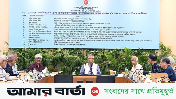 সোমবার (১০ নভেম্বর) রাজধানীর শেরেবাংলা নগরের এনইসি সম্মেলন কক্ষে একনেক সভা শেষে বিজ্ঞপ্তিতে এ তথ্য জানানো হয়। বৈঠকে সভাপতিত্ব করেন প্রধান উপদেষ্টা এবং একনেক চেয়ারপারসন ড. মুহাম্মদ ইউনূস।