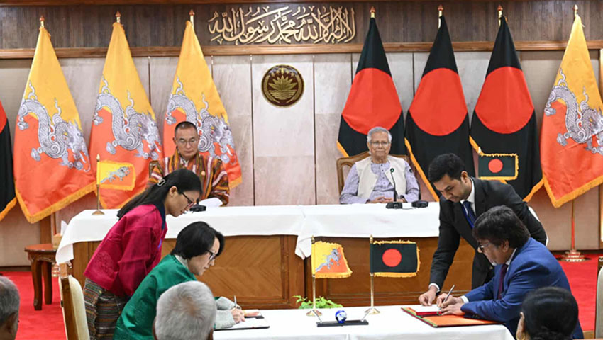 দুই দেশের শীর্ষ নেতাদের দ্বিপক্ষীয় বৈঠক শেষে শনিবার স্বাস্থ্য খাতে সহযোগিতা ও ইন্টারনেট সংযোগ বৃদ্ধিতে বাংলাদেশ ও ভুটান দুটি সমঝোতা স্মারক (এমওইউ) সই করেছে। স্বাস্থ্য খাতে সহযোগিতার অংশ হিসেবে স্বাস্থ্যকর্মী নিয়োগ বিষয়ে প্রথম সমঝোতা স্মারকটি সই করেন বাংলাদেশের স্বাস্থ্য ও পরিবার কল্যাণ মন্ত্রণালয়ের স্বাস্থ্য সেবা বিভাগ এবং ভুটান সরকারের স্বাস্থ্য মন্ত্রণালয়ের প্রতিনিধি। বাংলাদেশের পক্ষে নথিতে সই করেন স্বাস্থ্য সেবা বিভাগের সচিব সাইদুর রহমান।