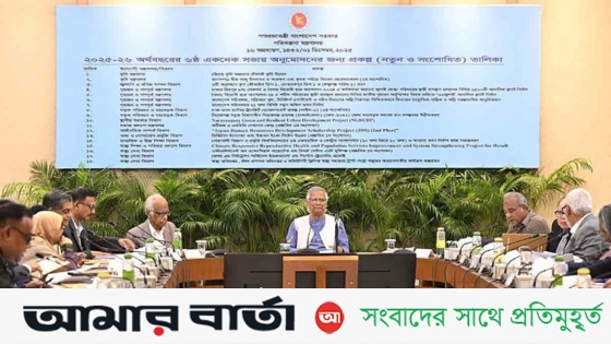 সোমবার (১ ডিসেম্বর) রাজধানীর শেরেবাংলা নগরের পরিকল্পনা কমিশন চত্বরে এনইসি সম্মেলন কক্ষে ২০২৫-২৬ অর্থবছরের ৬ষ্ঠ একনেক সভা শেষে এ তথ্য জানানো হয়। বৈঠকে সভাপতিত্ব করেন প্রধান উপদেষ্টা এবং একনেক চেয়ারপারসন ড. মুহাম্মদ ইউনূস।