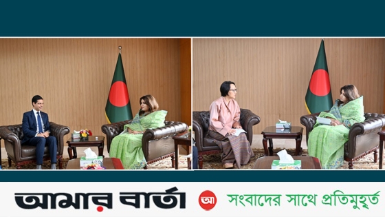 পররাষ্ট্র প্রতিমন্ত্রী শামা ওবায়েদেরসঙ্গে বৈঠক করেছেন ঢাকায় নিযুক্ত নেপালের রাষ্ট্রদূত ঘনশ্যাম ভান্ডারী ও ভুটানের রাষ্ট্রদূত দাসো কর্মা হামু দর্জি।