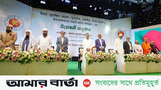 দেশের ধর্মীয় সম্প্রীতি ও সামাজিক নিরাপত্তার এক অনন্য মাইলফলক হিসেবে ইমাম, মুয়াজ্জিন এবং বিভিন্ন ধর্মের ধর্মীয় নেতাদের সরকারি সম্মানি প্রদান কার্যক্রমের শুভ উদ্বোধন করেছেন প্রধানমন্ত্রী তারেক রহমান।