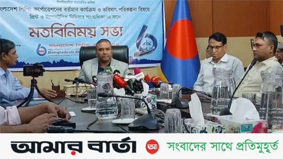 সংবাদ সম্মেলনে কথা বলেন বিএসসির ব্যবস্থাপনা পরিচালক কমডোর মাহমুদুল মালেক