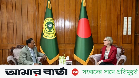 বাংলাদেশ জাতীয় সংসদের স্পিকার হাফিজ উদ্দিন আহমদেরসঙ্গে সৌজন্য সাক্ষাৎ করেছেন ঢাকায় নিযুক্ত যুক্তরাজ্যের হাইকমিশনার সারাহ কুক। সোমবার (২৭ এপ্রিল) স্পিকারের কার্যালয়ে এই সাক্ষাৎ অনুষ্ঠিত হয়। বৈঠকে ব্রিটিশ হাইকমিশনার বাংলাদেশের গণতান্ত্রিক অগ্রযাত্রায় যুক্তরাজ্যের সর্বদা পাশে থাকার দৃঢ় অঙ্গীকার ব্যক্ত করেন।