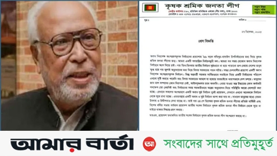 শনিবার (২৭ ডিসেম্বর) বিকেলে কৃষক শ্রমিক জনতা লীগের ভারপ্রাপ্ত সাধারণ সম্পাদক শফিকুল ইসলাম দেলোয়ার এক প্রেস বিজ্ঞপ্তির মাধ্যমে বিষয়টি নিশ্চিত করেছেন।