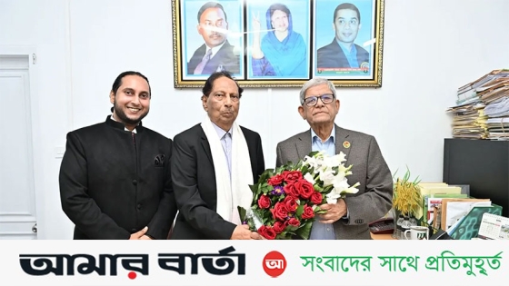 ছবিতে দেখা যায়, গুলশানস্থ বিএনপি চেয়ারম্যানের কার্যালয়ে দলের মহাসচিব মির্জা ফখরুল ইসলাম আলমগীরের হাতে ফুলের তোড়া দিয়ে দিচ্ছেন অধ্যাপক আবু সাইয়িদ।