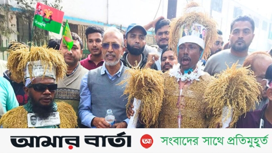 মাথা থেকে পা পর্যন্ত শরীরজুড়ে লাগানো পাকা ধান। দূর থেকে দেখলে মনে হয়, বিএনপির নির্বাচনী প্রতীক ‘ধানের শীষ’ যেন জীবন্ত হয়ে রাজপথে নেমে এসেছে। ভিন্নধর্মী এই সাজে বিএনপির জনসমাবেশে হাজির হয়ে সবার নজর কেড়েছেন কৃষক দলের দুই কর্মী। ব্যতিক্রমী এই উপস্থিতি মুহূর্তেই সমাবেশস্থলে আসা নেতাকর্মী ও সাধারণ মানুষের মনোযোগের কেন্দ্রে পরিণত হয়।
