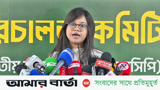 বাংলামোটরে সংবাদ সম্মেলনে এনসিপির নির্বাচন পরিচালনা কমিটির সদস্য সচিব মনিরা শারমিন