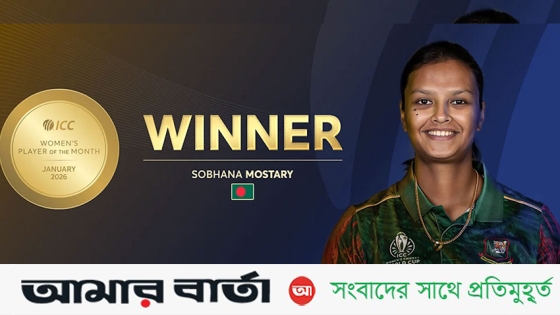 আইসিসি নারী টি-টোয়েন্টি বিশ্বকাপের গ্লোবাল কোয়ালিফায়ারে দারুণ পারফরম্যান্সের স্বীকৃতি পেলেন সোবহানা মোস্তারি। ২০২৬ সালের জানুয়ারি মাসের আইসিসির সেরা নারী খেলোয়াড় হয়েছেন বাংলাদেশের এই ক্রিকেটার।